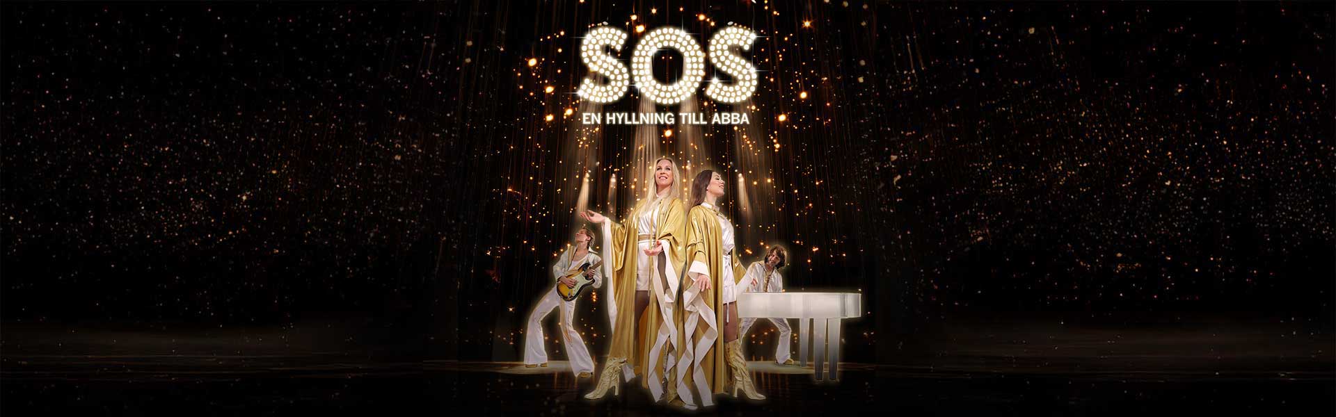 Välkommen till en glittrande middagsshow där du får njuta av en trerätters middag och SOS – en hyllning till ABBAs tidlösa hits. Med liveband, autentiska kostymer och gästartisten Mike Watson från ABBAs originalband blir detta en kväll att minnas.