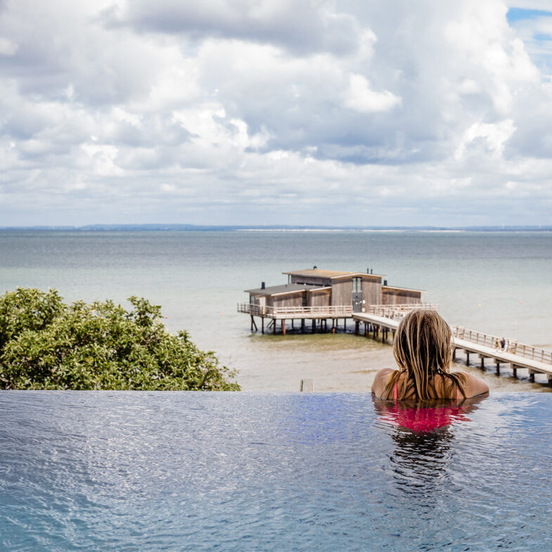 Hotel Skansen’s spa is divided into three unique areas, allowing you to relax and find your favourite spot. Start in the winter garden with saunas and pools. Take the lift up to the wonderful rooftop with sea views and heated outdoor pools all year round. Walk along the pier to our cold sea bath, 60 metres out in the Kattegat. We also offer massages and treatments. Here, relaxation, the sea and luxurious experiences come together all year round.