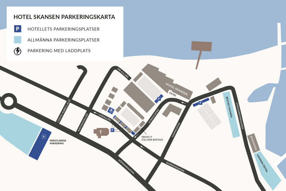 - Hotellets övriga parkeringar är avgiftsbelagda och kan inte bokas i förväg. Betala på plats via Pair GO. Parkeringen gäller inte en specifik plats – om du flyttar bilen kan någon annan ta platsen.